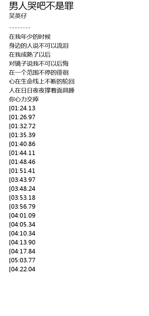 男人哭吧不是罪nan Ren Ku Ba Bu Shi Zui Lyrics Follow Lyrics