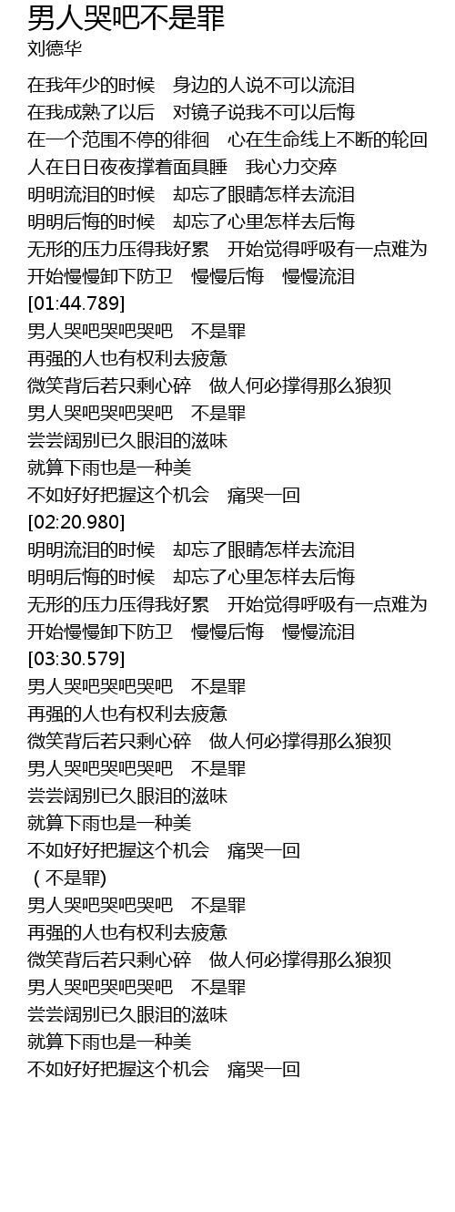 Nan Ren Ku Ba Bu Shi Zui 男人哭吧不是罪lyrics 歌詞with Pinyin By Liu De Hua 刘德华andy Lau Chinese Song